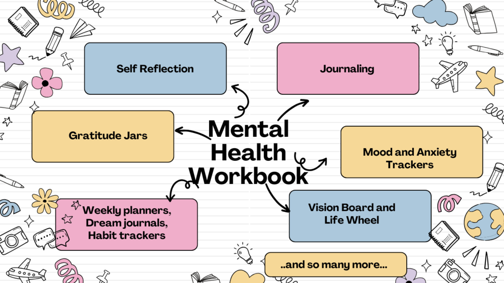 Welcome to your Mental Health Workbook. A beautiful, printable workbook designed to help you heal, reflect, grow, and thrive!